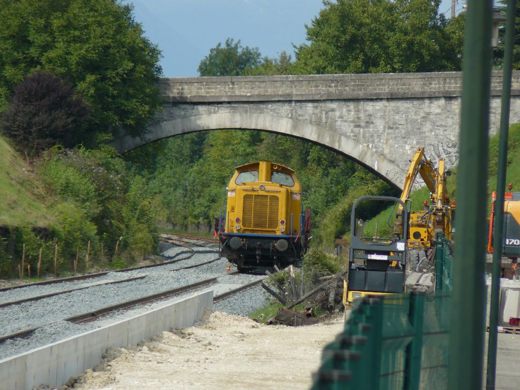 J'ai remarqué qu'il n'y avait pas de photos sur le chantier de RVB de la ligne Gières-Montmélian aussi appelé Sillon Alpin Sud. Je vous propose donc quelques photos réalisées depuis le début du chantier fin mai 2011.