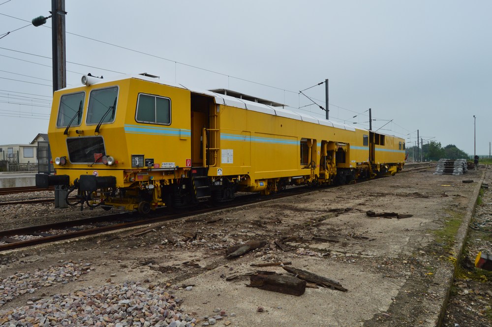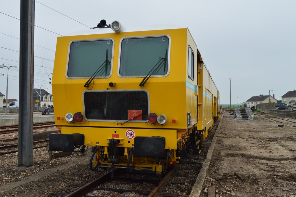 Voici la bourreuse Railmat ex MTF 99 87 9 124 513-2 Type 108 475 S garée à Saint Pierre des Corps sortie Ouest