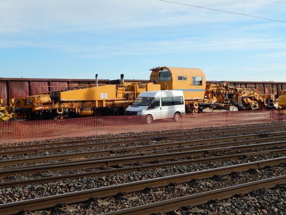 avec la Bourreuse d'appareils B66 UC - 99 87 9 124 554-6 de CLMTP ex Delcourt Ferroviaire