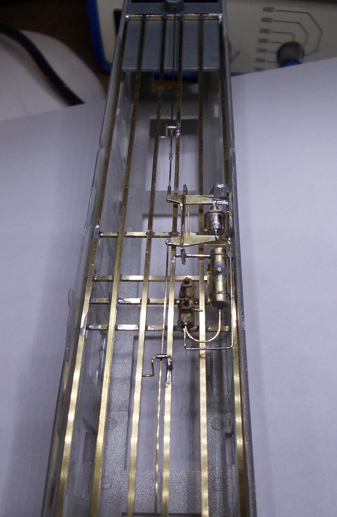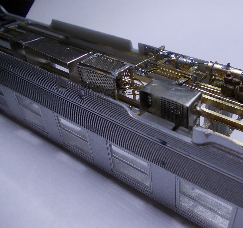 Les versions produites par Rivarossi ou HJ maintenant ont un châssis ou tout est moulé dans la masse donc d'un aspect assez "mastodonte" de plus ceux ci évoquent des châssis de voiture en service commercial et celui que je reproduits comporte des équipements totalement différents, disposition des différents coffres, tuyauteries, coffre de clim, etc... Les seules choses d'origine qui ne paraîssent pas avoir bougé sont les appareillages de freinage, ce que je reproduits en premier!!!