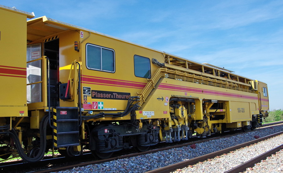 La voici pour une séance de bourrage sur le RVB Amiens Laon entre Flavy-le-Martel et Jussy (02) le 19 avril 2018 N° de chantier B5