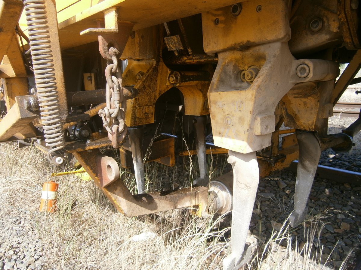 Voici une Bourreuse Combi 20 non identifiée - Point d'attache Elog Bretagne avec la voiture 80 87 979 3 305-9 Uas H55 0 SNCF-RN