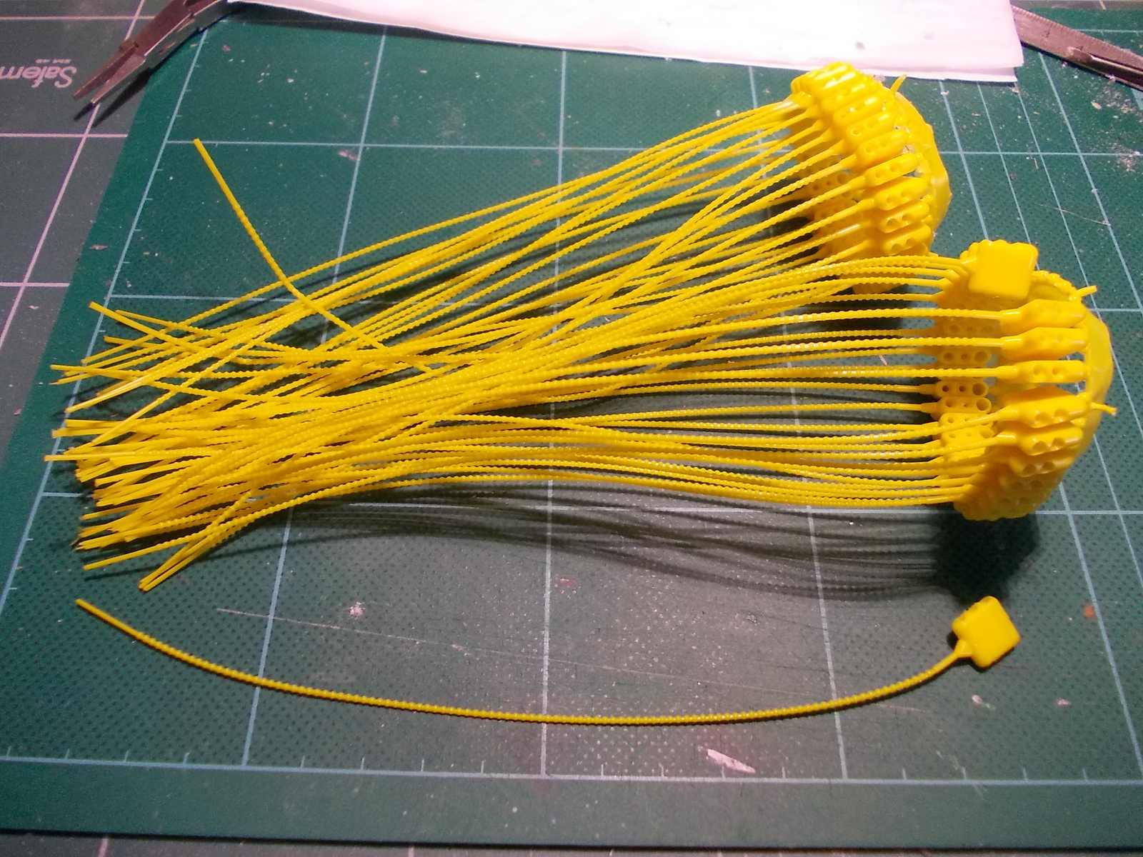 Comment as-tu réalisé les espèces de supports de câbles en forme de chaîne sur les bras de la grue ?