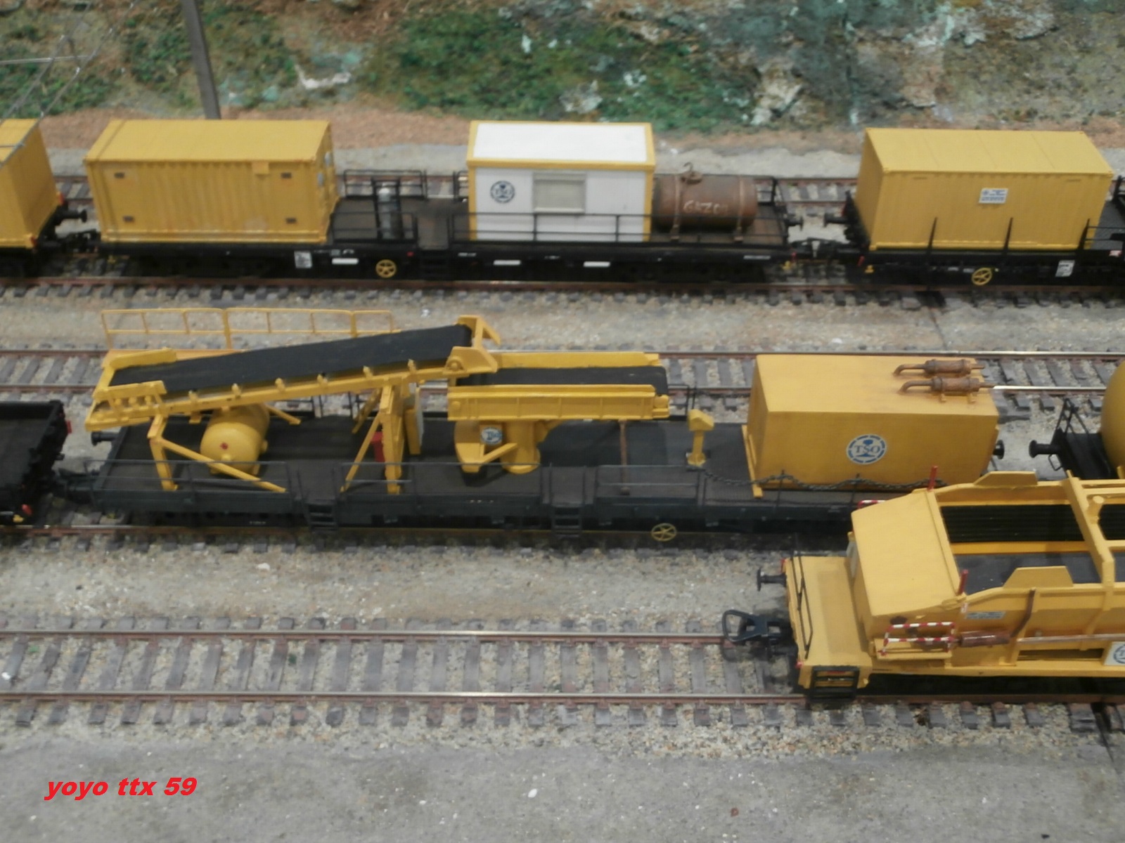 Entre la dégarnisseuse, les tombereaux, les wagons canons & énergie, sans compter les locomotives, cela fait une belle longueur de rame. ( Cela irait bien sur le décors de la gare de Belfort) :coucou:
