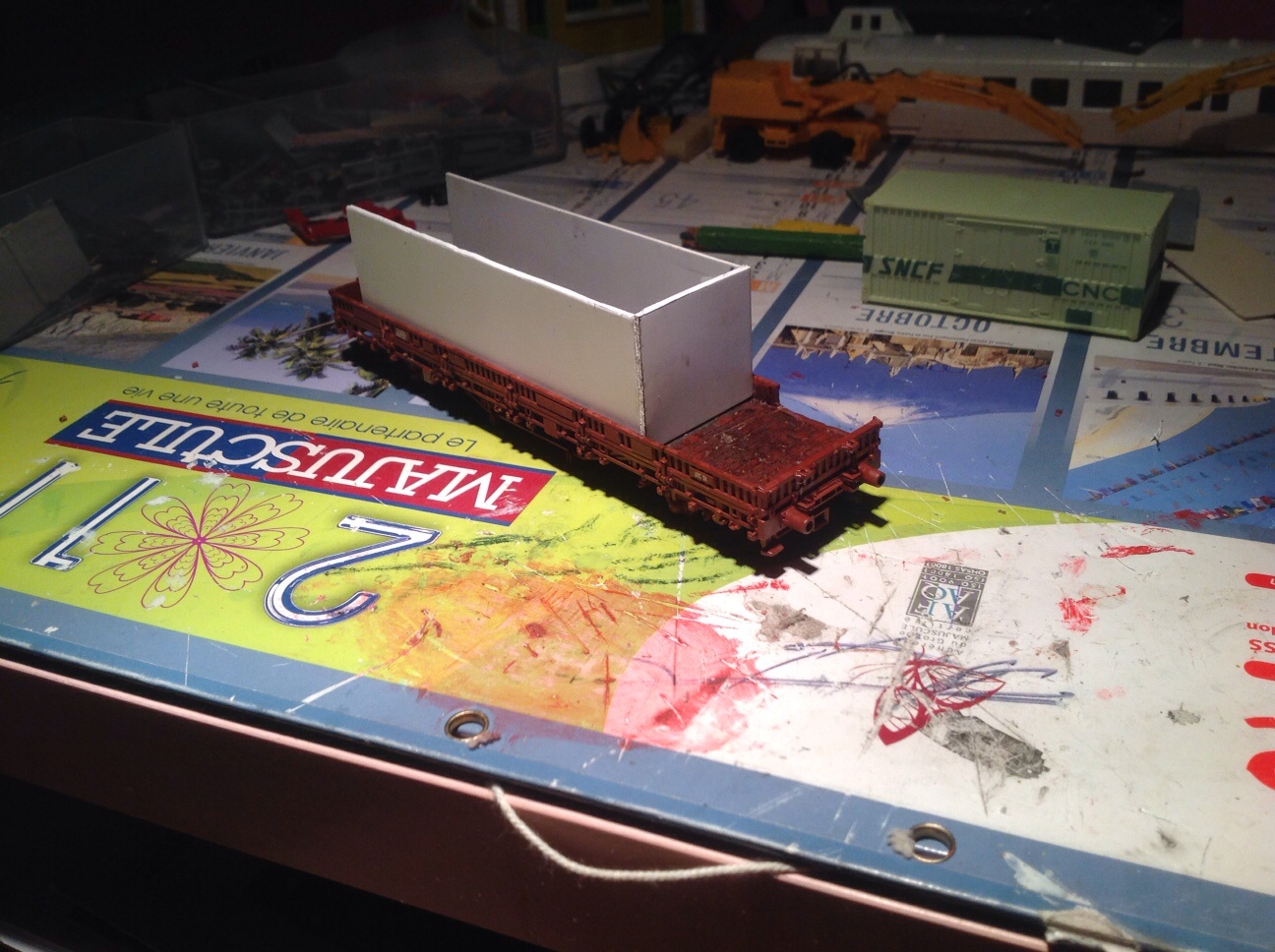 Voici une de mes dernière réalisation un wagon porte bungalow SNCF