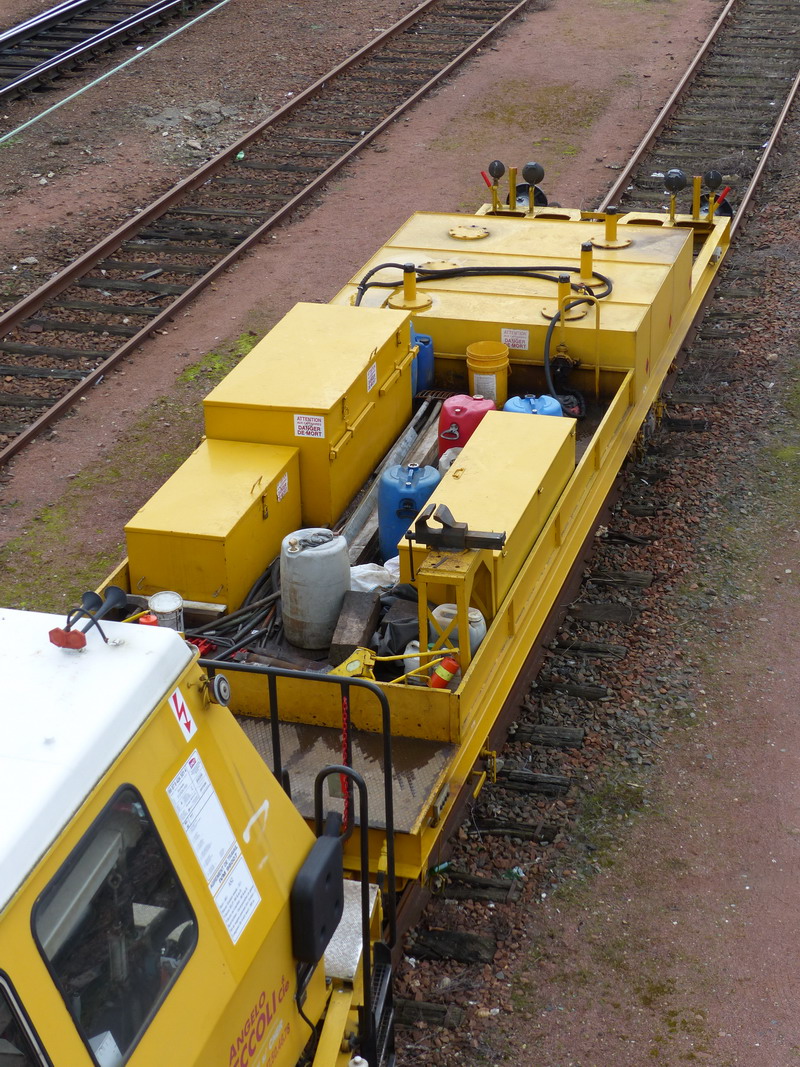 il y a une petite base de travaux Meccoli à Tours avec 4 pelleteuses Rail Route avec la Bourreuse