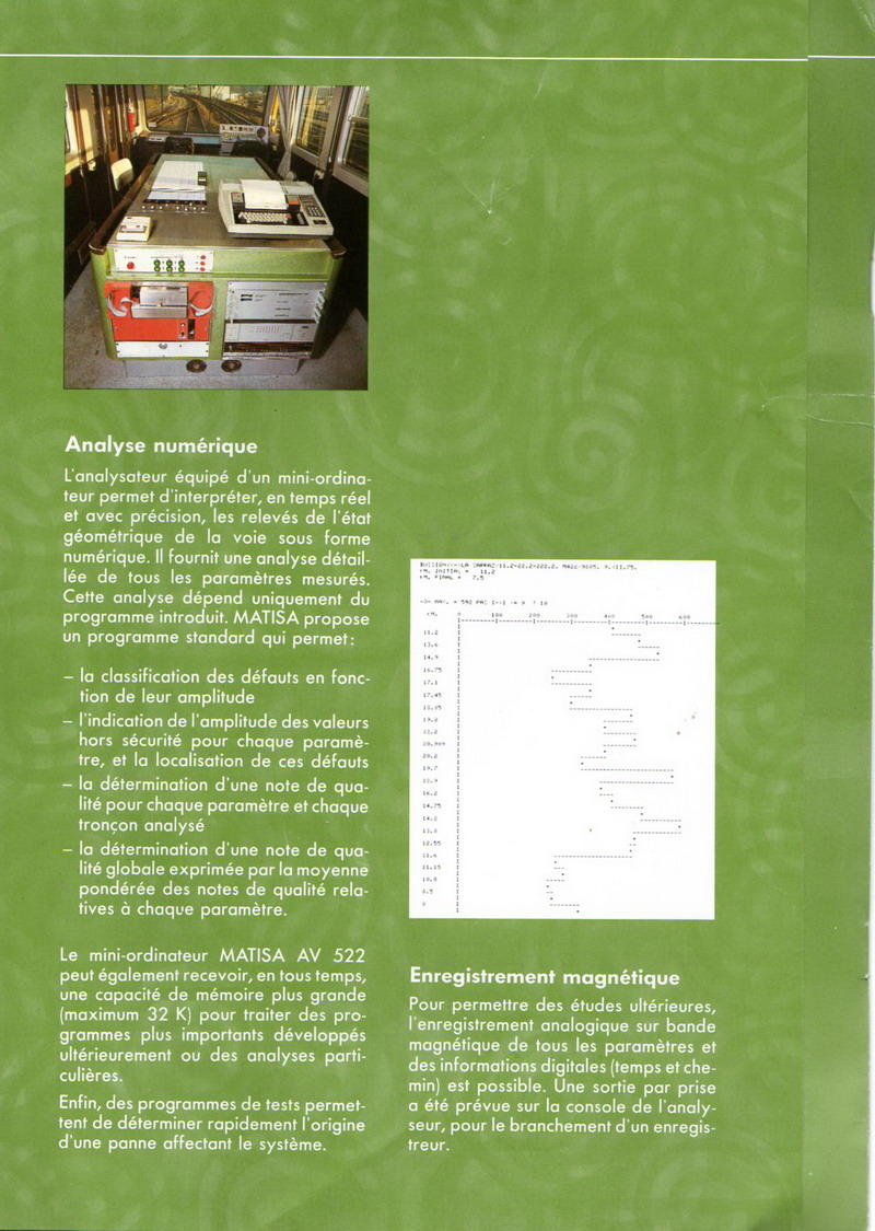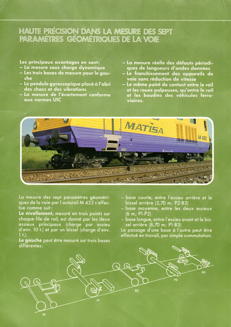 Voici l'autorail M 422 de MATISA pour le contrôle de la géométrie de la voie (une documentation des années 1975/1980)
