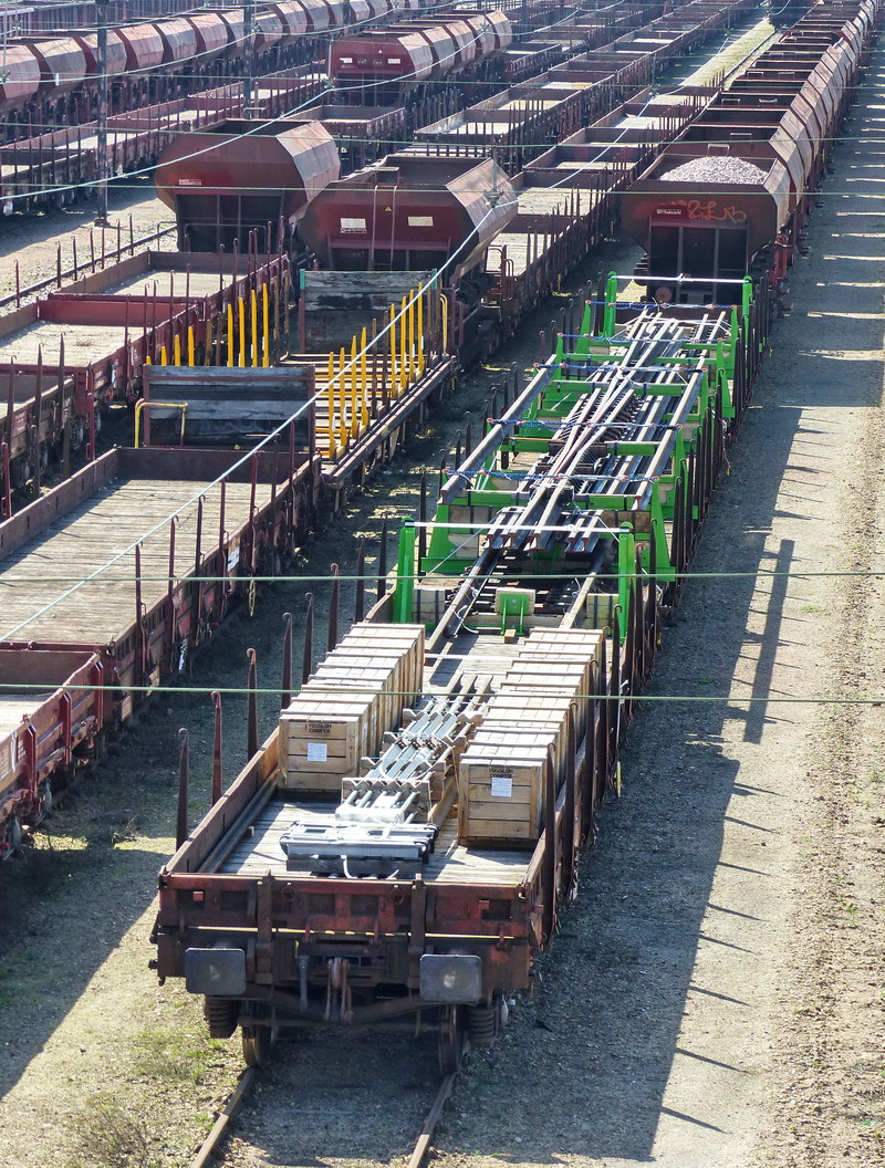 Voici le 33 87 3999 852-8 Res 90 6 RIV F-ERSA - wagon loué à l'Infra par Ermewa pour le transport des caisses Vossloh Cogifer