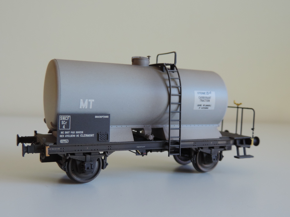 Décapage puis nouvelle peinture de la citerne d'un OCEM 29 REE, marquages spécifique par décals, patine avec les produits Décapod , ce wagon de carburant restera dans les emprises du dépôt de Clermont car les côtés des traverses sont peints en jaunes ! ;)