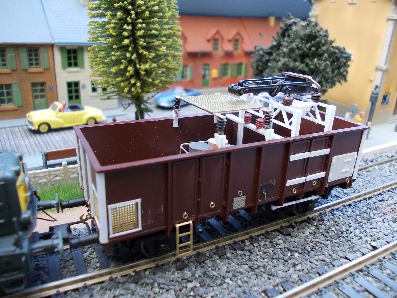 Modèle original reproduisant un wagon tombereau transformé en graisseur de caténaires du dépôt de Thionville dans les années 80.