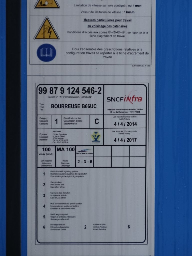 Voici une info du 16-01-2015 des ateliers de Matisa France à Sens (89) sur la 66 UC LGV avec son numéro du