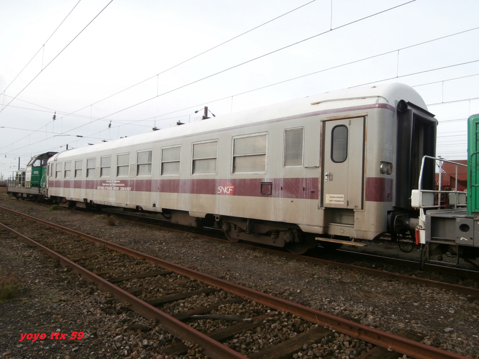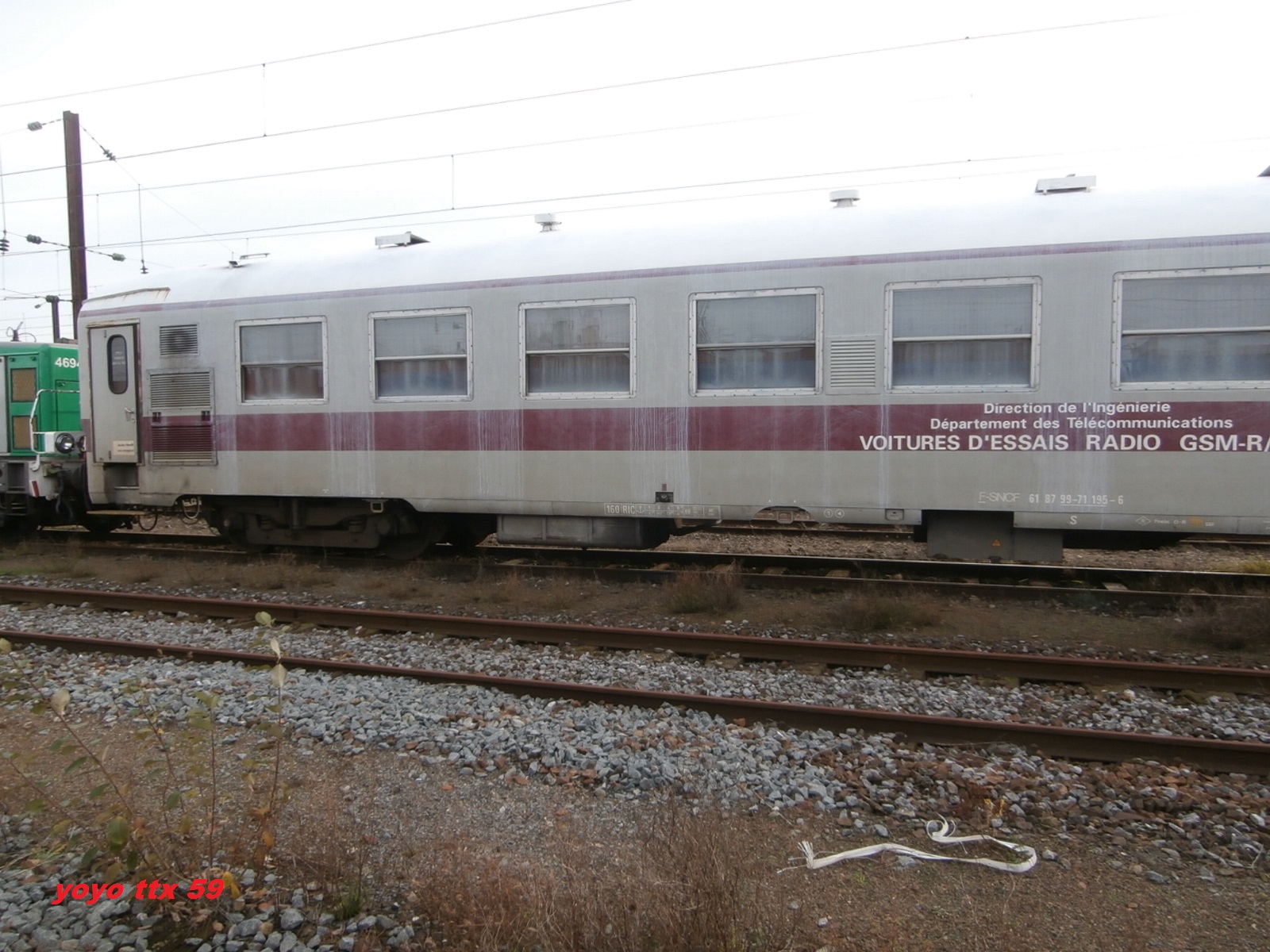 Voiture d'essais Radio GSM-R/RST - 61 87 99 71 195-6 S (ex 50 87 20 71 785 B10 UIC 04-1972 modifiée en 1981) de Villeneuve Prairie