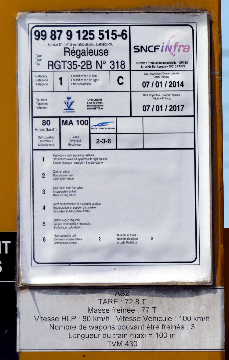 Je viens de découvrir un fil sur le forum de Trains-en-Voyage montrant des photos de la régaleuse AS2 ATA 0677 Vecchietti. Elles m'interpellent, car le n° d'agrément AS2 ATA 0677 correspond bien à une régaleuse de Vecchietti d'après le dossier d'agrément téléchargeable sur le site de l'entreprise (donc document officiel !), mais du type RGT 35 2B, alors qu'il me semble lire RGT 40 2B sur ta 1ère photo. Si quelqu'un en sait plus sur le sujet ... Pascal :?:
