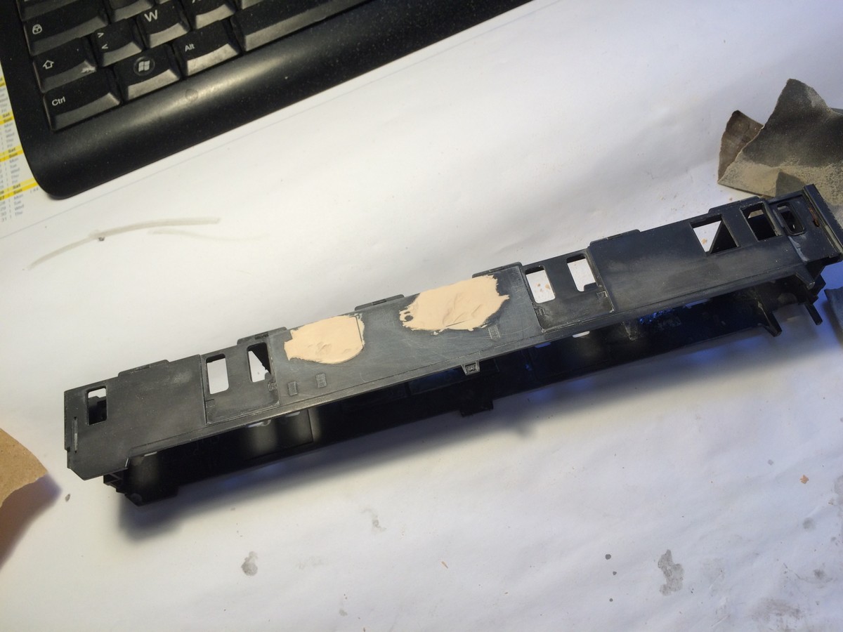 après démontage total et décapage , on n’attaque le bouchage des 2 vitres central de la parti latéral des 2 cotés au mastique