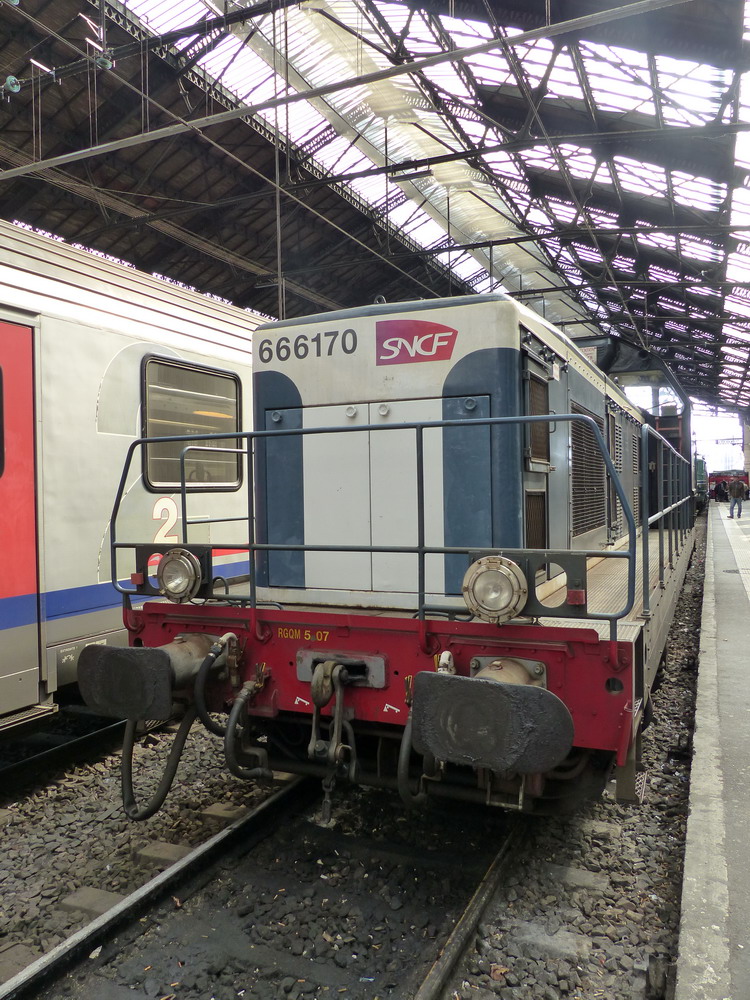 la 666170 se trouve en tête côté heurtoir des Trains Mythiques voie M de la gare de Lyon à Paris