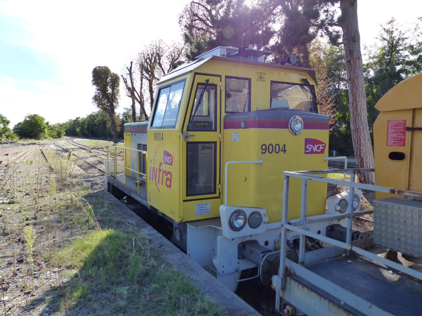 Voici le locotracteur Y 9004 Infra 98 87 0009 004-2 F-SNCF avec une rame de contrôle des ouvrages d'art