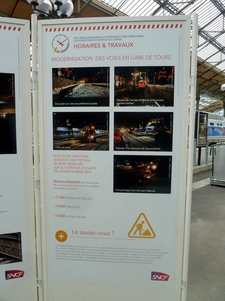 Voici des panneaux en gare de Tours pour les travaux sur la zone Tours en 2015