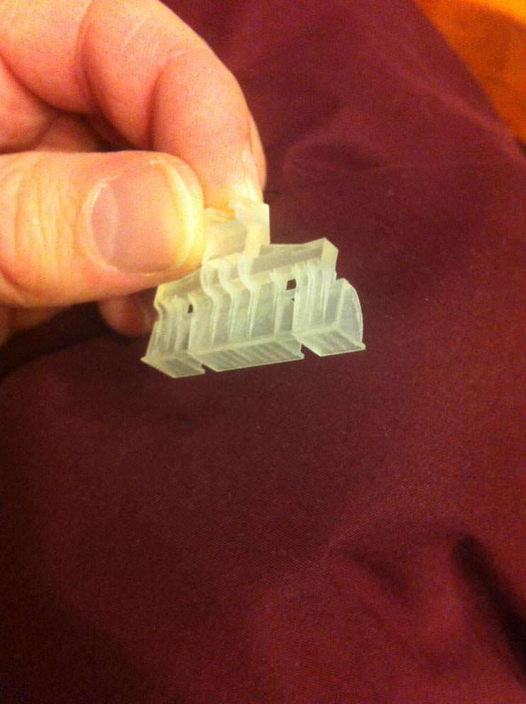 Il faudra dégraisser les pieces pour enlever le produit de traitement qu'utilise shapeways pour la production et qui est très gras. Pour ce faire, il faut simplement nettoyer les pieces a l'eau tiede et du liquide vaiselle, eviter les produits de dégraissage industrielle ou chimique