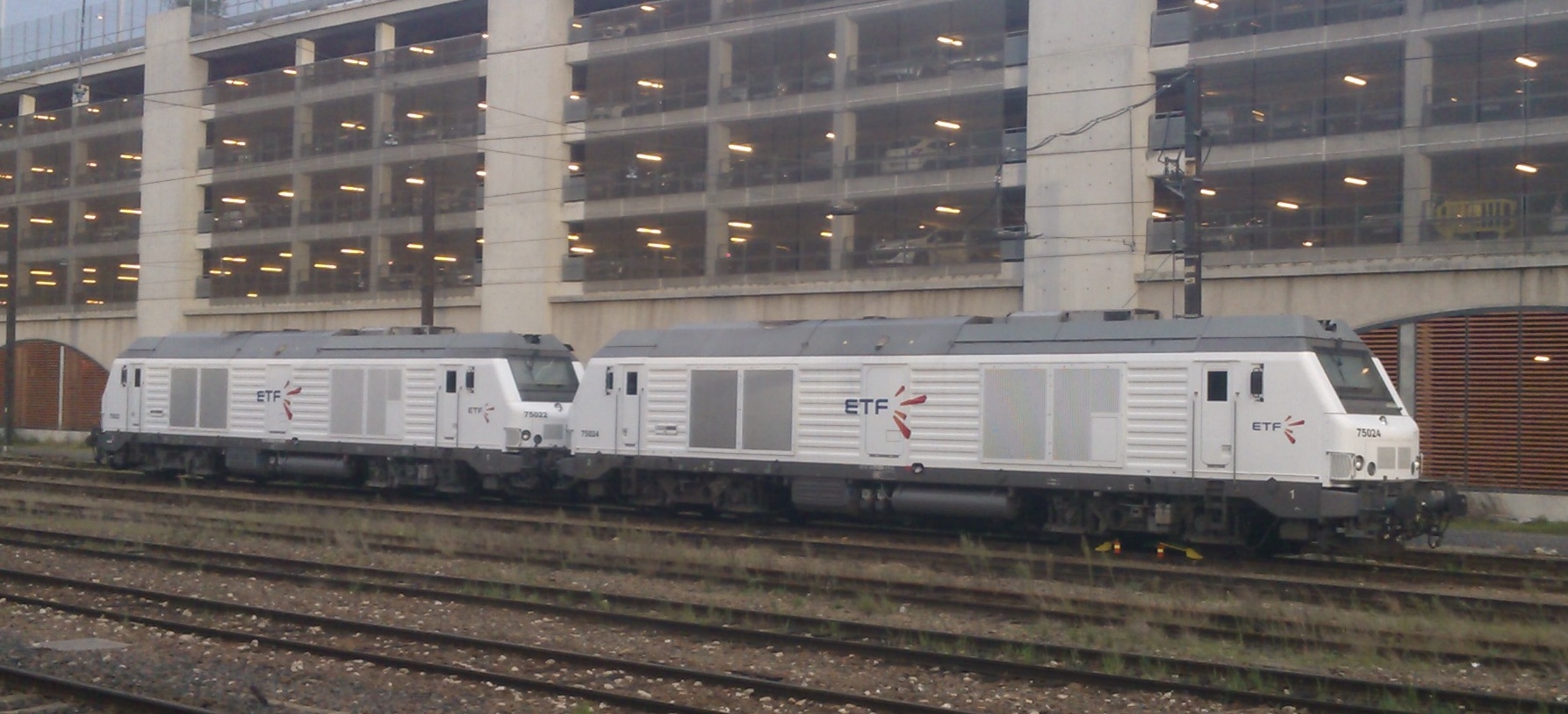 BB 75022 et BB 75024 appartenant à un loueur et pelliculées dans la livrée ETF.