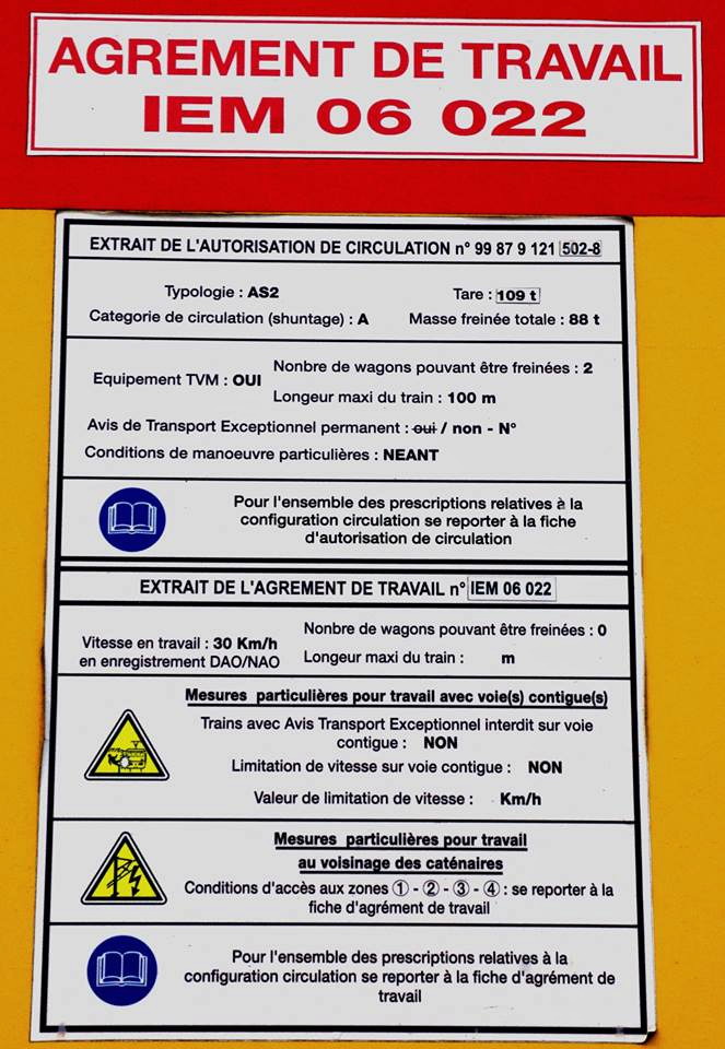 avec un nouveau Agrément de travail IEM - 18-01-2016/2019 et n°B2 pour les travaux sur la ligne