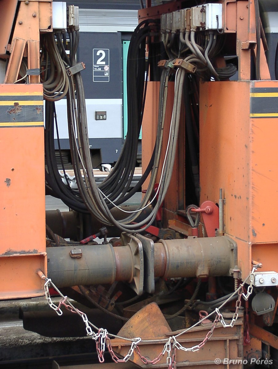 Quelques photos de l'attelage entre la bourreuse et l'élément comportant l'autre cabine de conduite.