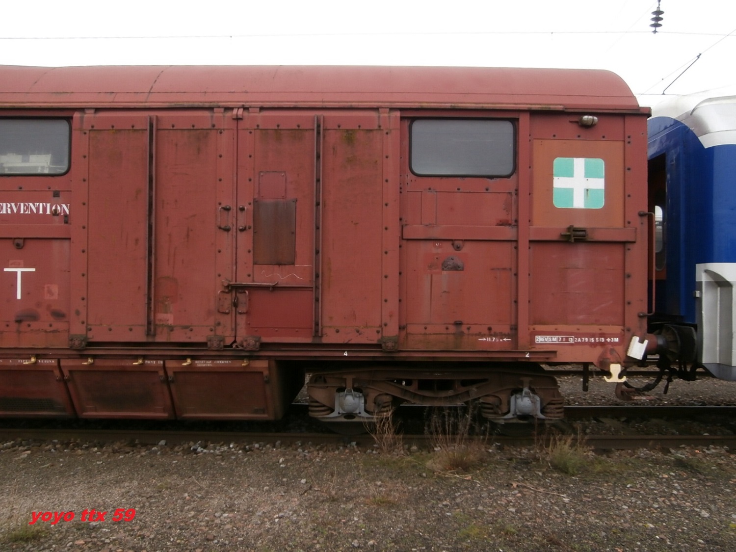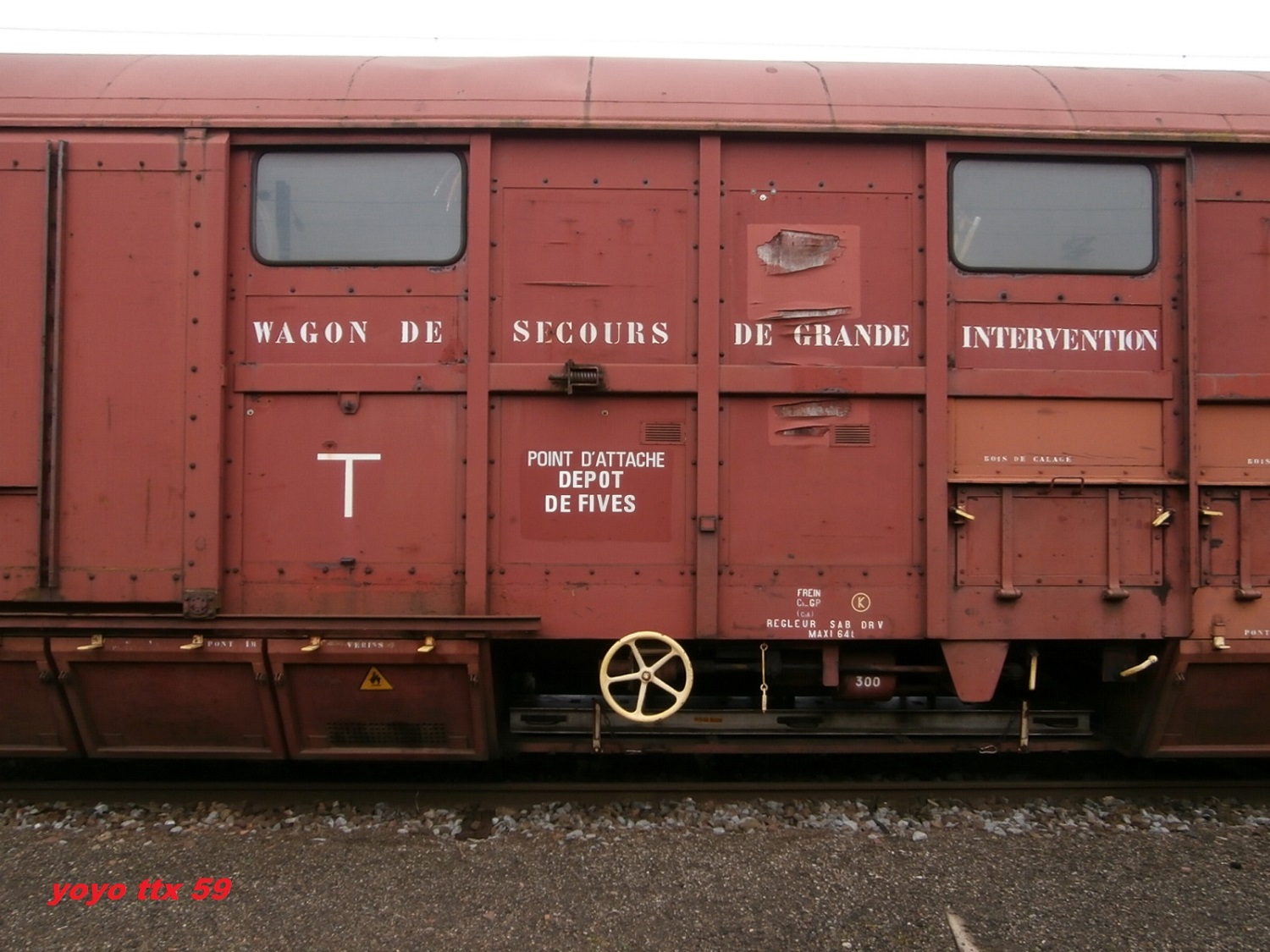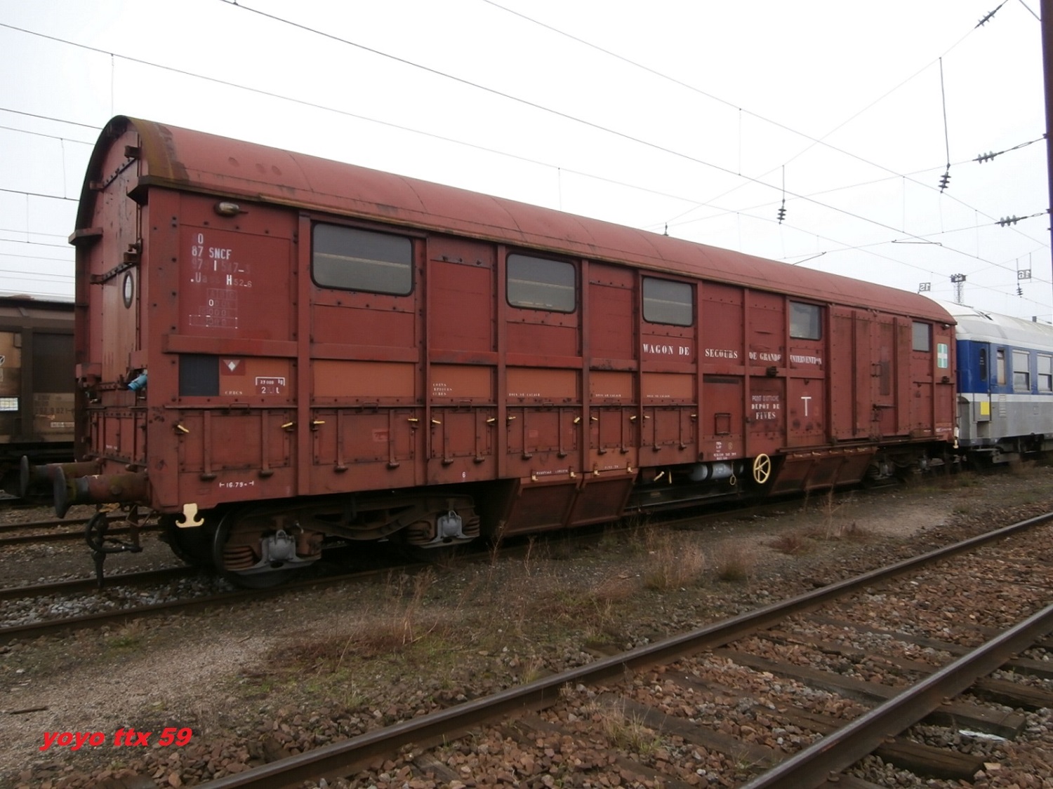 Il s'agit du wagon de secours de grande intervention Uass H52-6 80 87 979 1 547-3 - SNCF .