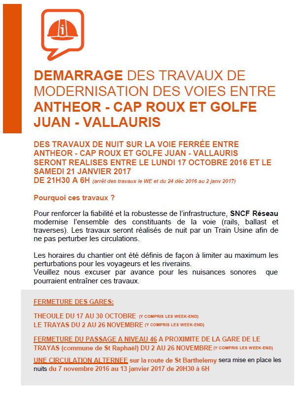 http://www.sncf-reseau.fr/fr/actualite/ ... x-et-golfeRenouvellement des voies entre Anthéor-Cap Roux et Golfe Juan-Vallauris du 17 octobre 2016 au 21 janvier 2017