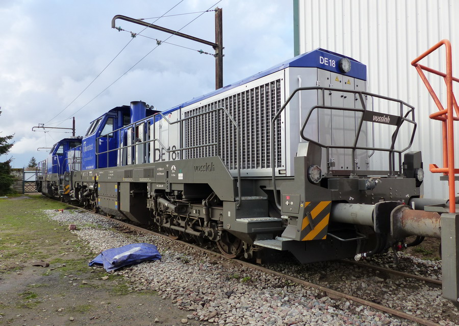 Sous la forme de ses DE 12 et DE 18, Vossloh fournit à partir de 2012 des locomotives diesel-électriques à quatre essieux conçues pour les fonctions de manœuvre et de ligne principale: le DE 12 avec 1200 kW et le DE 18 avec 1.800 kW. Le poids total de ces locomotives varie entre 80 et 90 t.