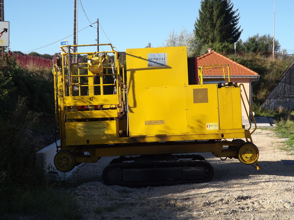 Voici une photo d'un VRRIP à chenilles ELAN 00B - ELA.06.xxx.xx non identifié en gare de Montrichard pour des travaux sur la ligne