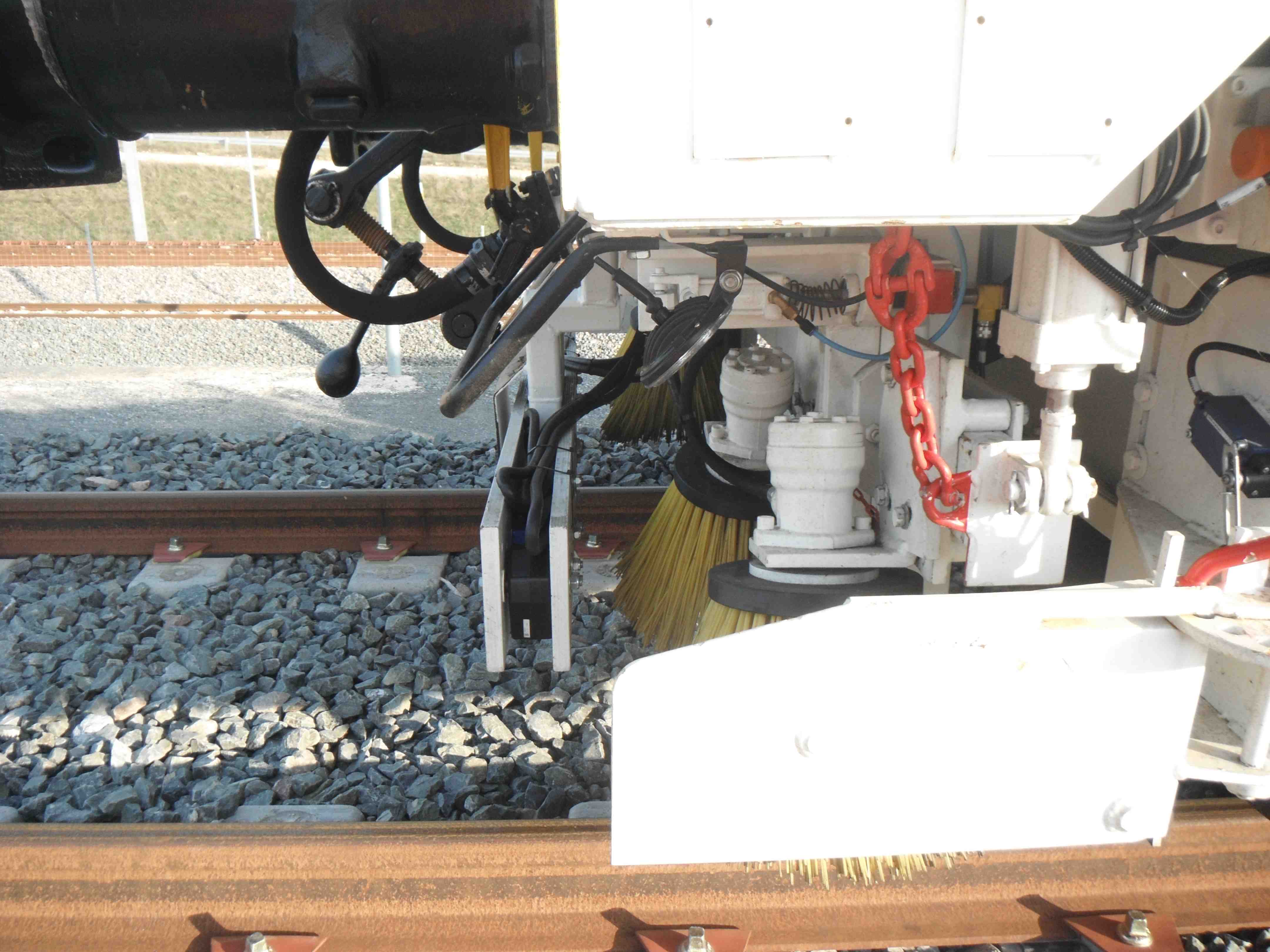 Les tourteaux rotatifs pour nettoyer les têtes de traverses et juste devant les 6 capteurs de la TVM 430 bord (2 pour les infos continues, 2 pour les points d'information ponctuels EPI TVM300 sol, 2 pour les points d'information ponctuels BSP TVM430 sol bord) encapsulés dans la traverse bois.