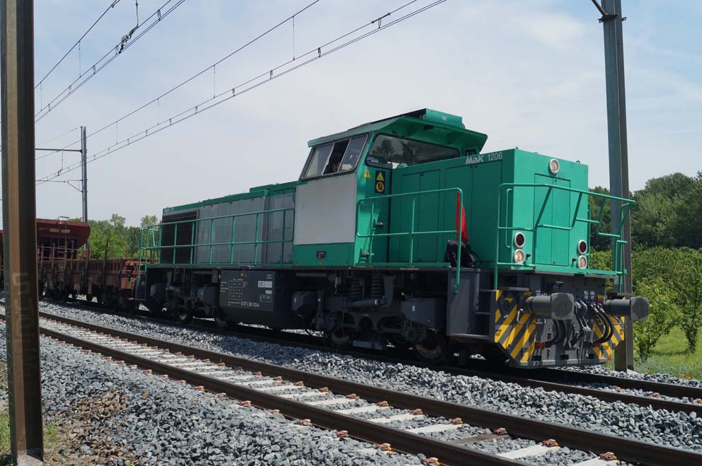 Aujourd'hui 1er juin 2017, elle travaille en tête d'une rame de wagons à ballast sur les travaux de renouvellement