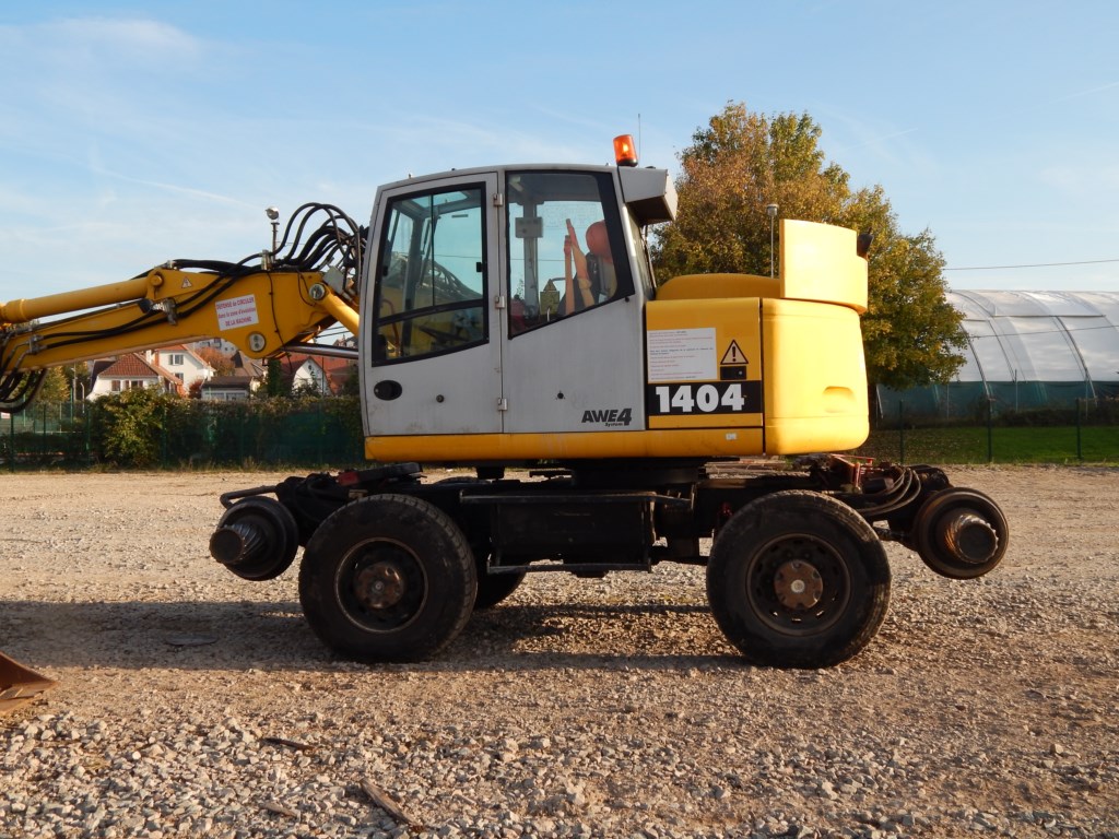 avec la vue sur l'autre Pelle Rail route Atlas 1404 ZW AW4 n°241Z301683 de Fouchard & Renard le 26 juin 2018 au niveau