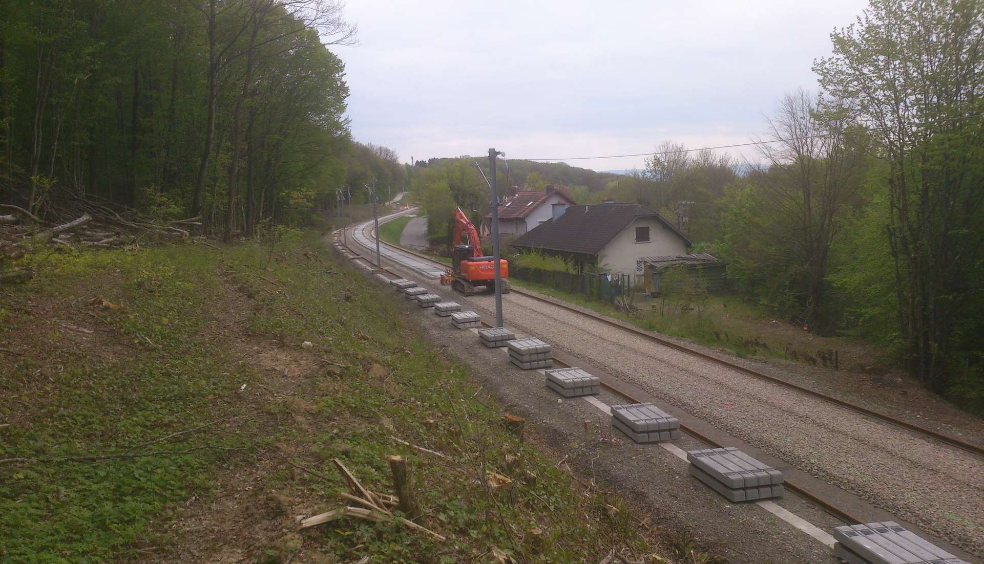 Delle: la pelleteuse Geirmar de Colas-Rail stationne sur le site.