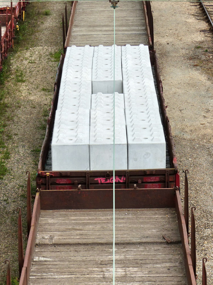 "Test de résistance en charge" avec passage d' une rame de wagons avec des blocs de béton (des gros Lego) il s'agit d'une manœuvre