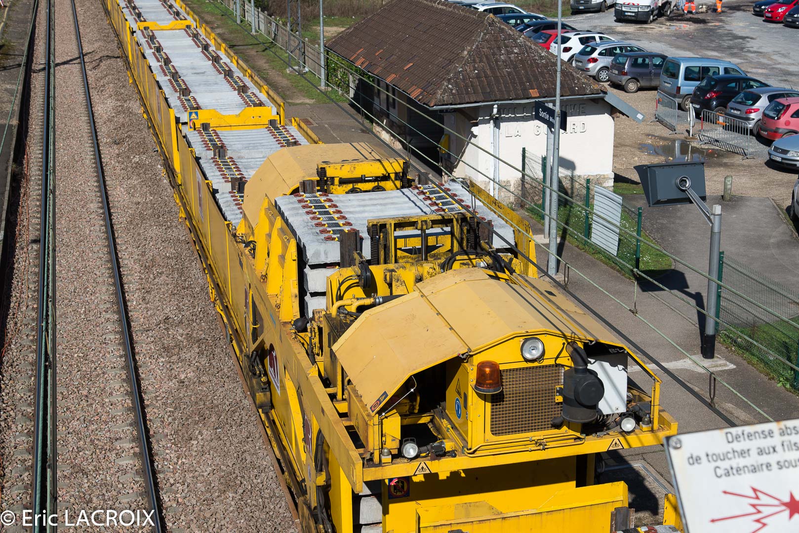 Train de renouvellement P95 MATISA Transalp Renouvellement à Villeneuve la Guyard le 22 mars 2017.