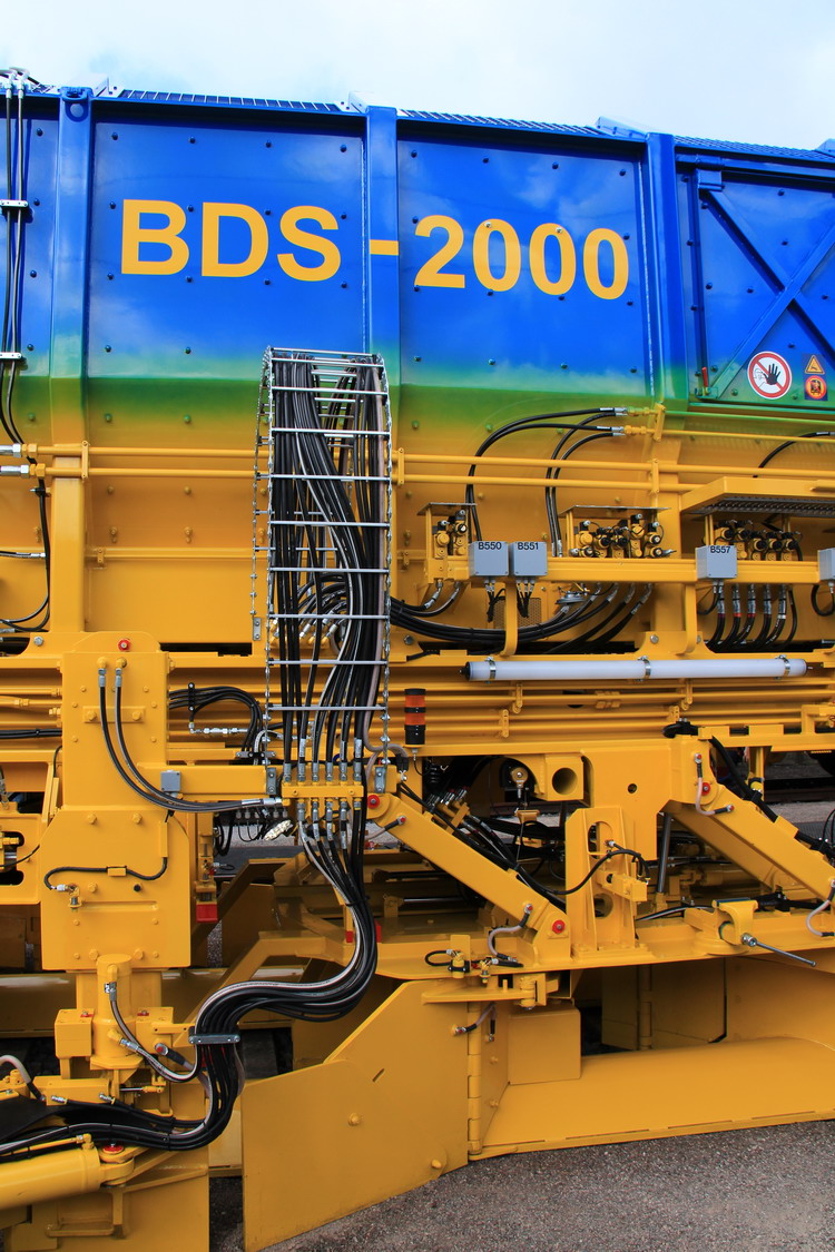 le BDS 2000-4 est une machine haute capacité pour effectuer la gestion des ballasts. Cela garantit une utilisation économique du ballast qui est une ressource précieuse. La machine est adaptée en sortie aux machines de bourrage à action continue .