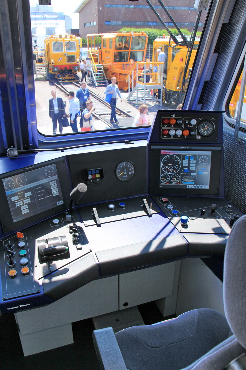 Voici la nouvelle génération de Bourreuse de voies et d'appareils sur le stand de Plasser & Theurer pour l'exposition Ferroviaire IAF Münster 2017 en Allemagne du 30 mai au 01 juin 2017