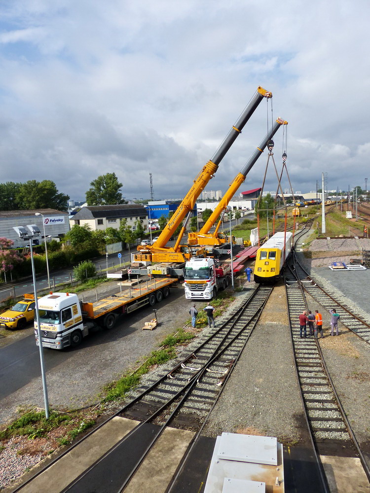 Pour répondre à l'Artiste: le transfert s'effectue en camion car la draisine n'est pas encore agréée. C'est justement pour entamer les tous premiers essais d'agrément sur SEA qu'elle se rend sur la base de Maillé-Nouâtre. S'il avait fallu la transférer par le rail, elle aurait dû obtenir le statut de" marchandise roulante" ce qui est très contraignant (cf. RC A 7d n°1 - Acceptation d'un matériel roulant n'effectuant pas d'activité de transport ... AMEC ou d'un agrément de circulation dit "marchandise roulante" à trouver sur le site de l'EPSF) et compliqué à organiser. Et au final, largement plus risqué et onéreux. :petitvieux: