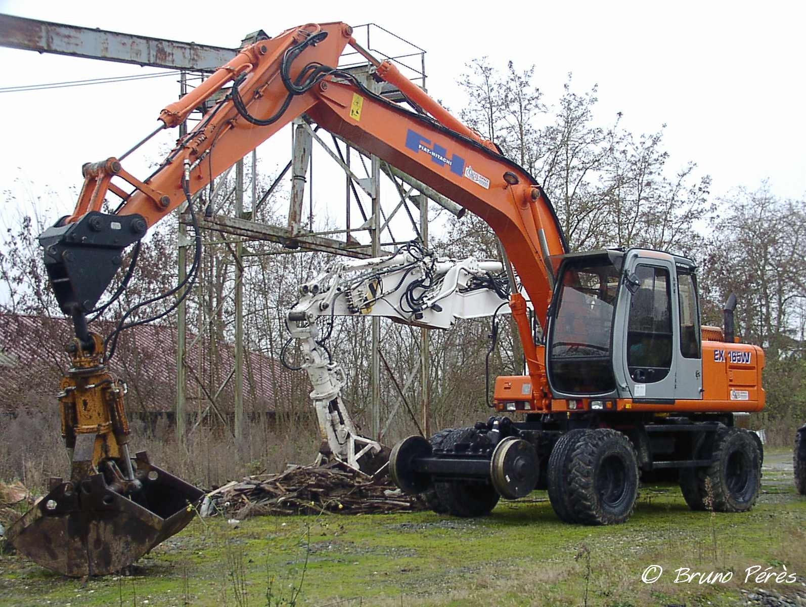 Ce samedi, j'ai trouvé une nouvelle pelle rail route à Gimont (32) dans le cadre de la 2ème tranche du RVB Toulouse-Auch. Je suis assez étonné de la taille de la flèche assez inhabituelle sur des rail route. Il semble évident qu'une telle pelle ne peut être utilisée que sur lignes non électrifiées.