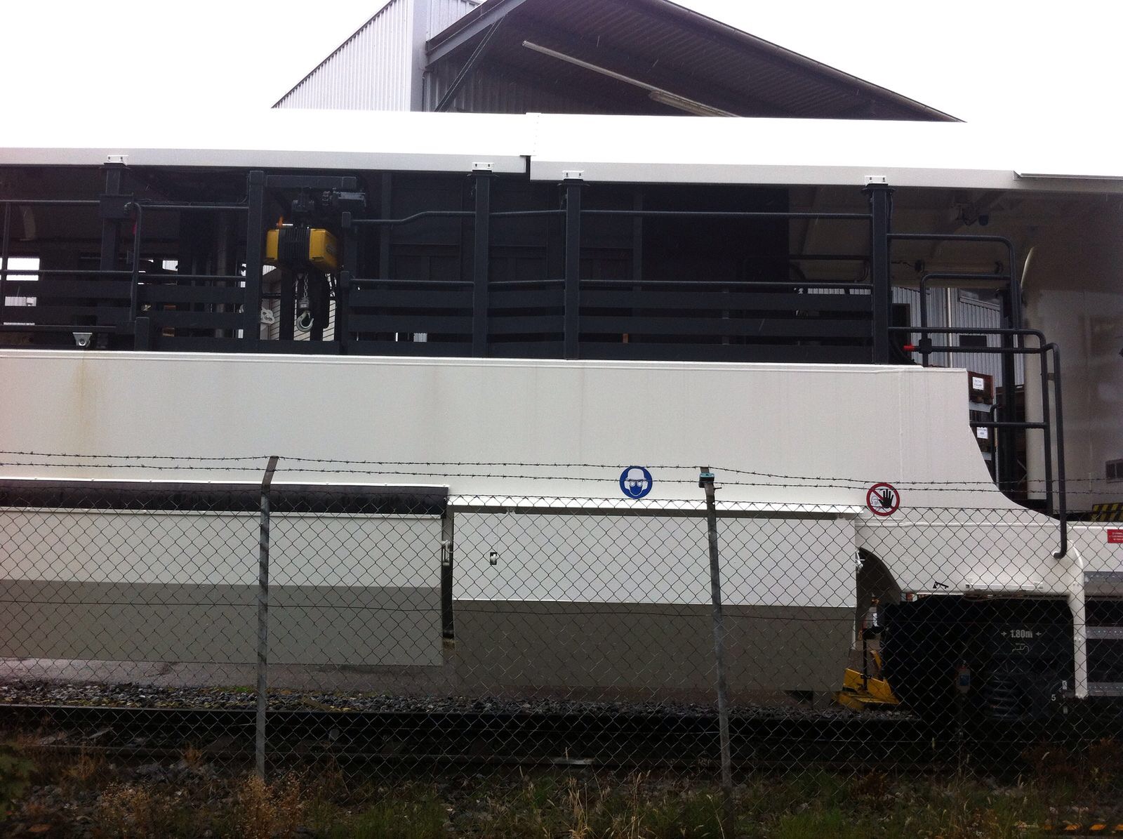 voici le wagon Jicad construit par Matisa, il permet le travail en sécurité du personnel