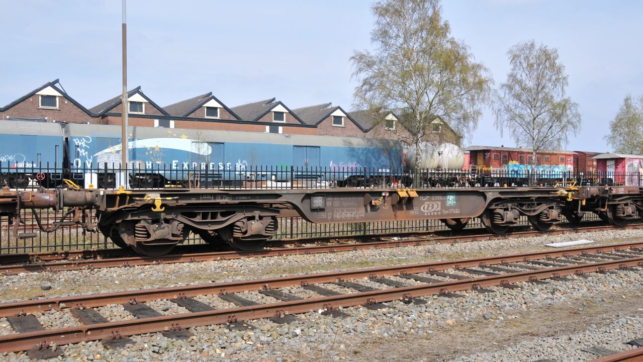 Voici le wagon portique TCR V 99 87 9 359 520-3 pour le déchargement et le chargement des LRS ZD (Zone dence)