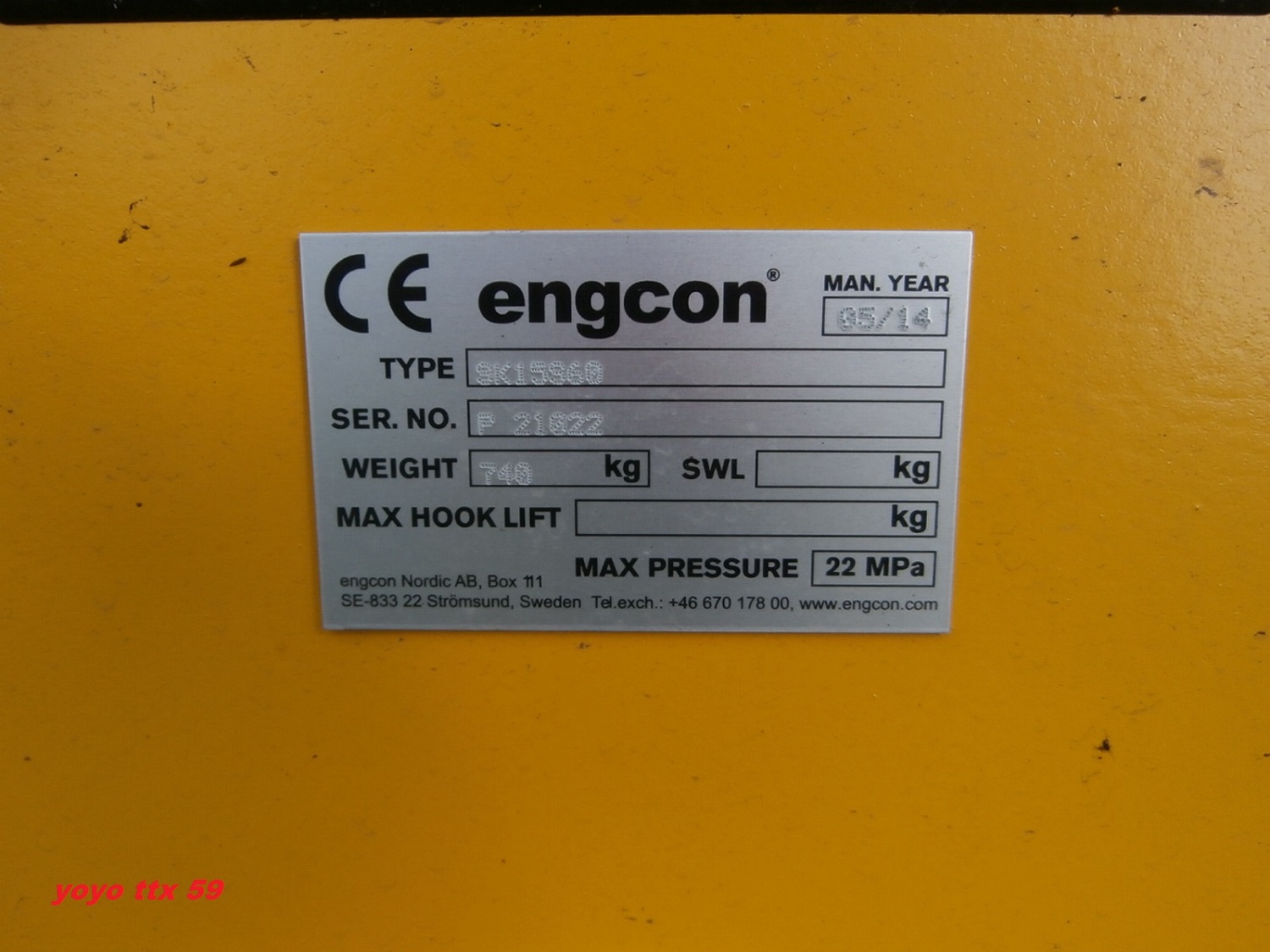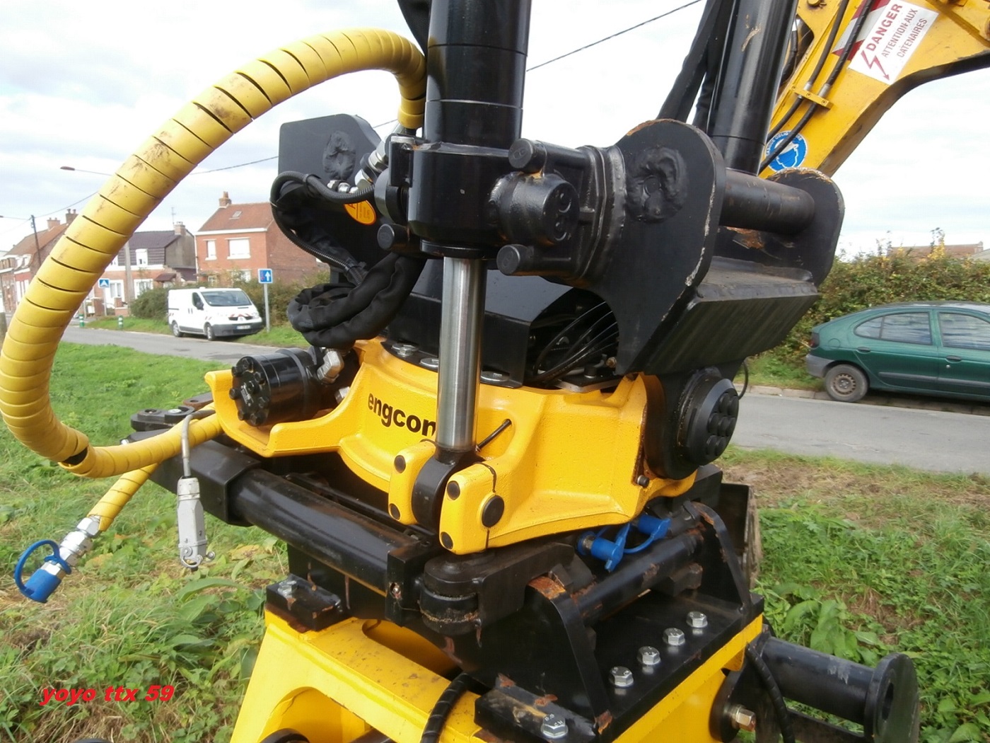 Voici un petit matériel qui équipe une pelle UNAC 22 TRR chez ETF .Je ne sais pas si il s'agit d'un Tiltrotator , mais c'est du ENGCON de type : SK15960 ( plaque sur la partie basse ) .Photos prisent le 11/10/2014 a Hazebrouck sur le chantier de changement d'appareils de voies au niveau du poste 2 :Plaque sur la partie basse :Plaque sur la partie haute :Et voila .