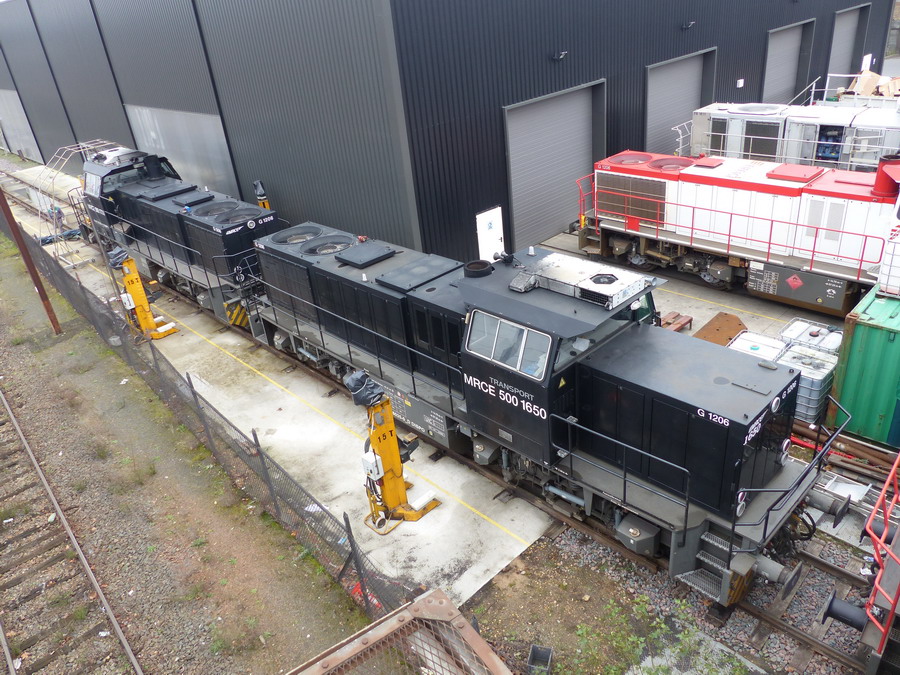 La voilà le 24 décembre 2017 avec d'autres Vossloh dans l'atelier IMATEQ de la Socofer