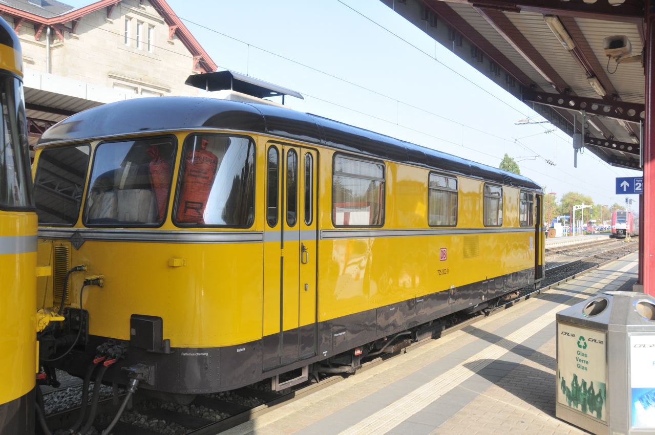 Voici le GLEISMESSWAGEN  725 002-0  en gare de Pétange (Luxembourg).