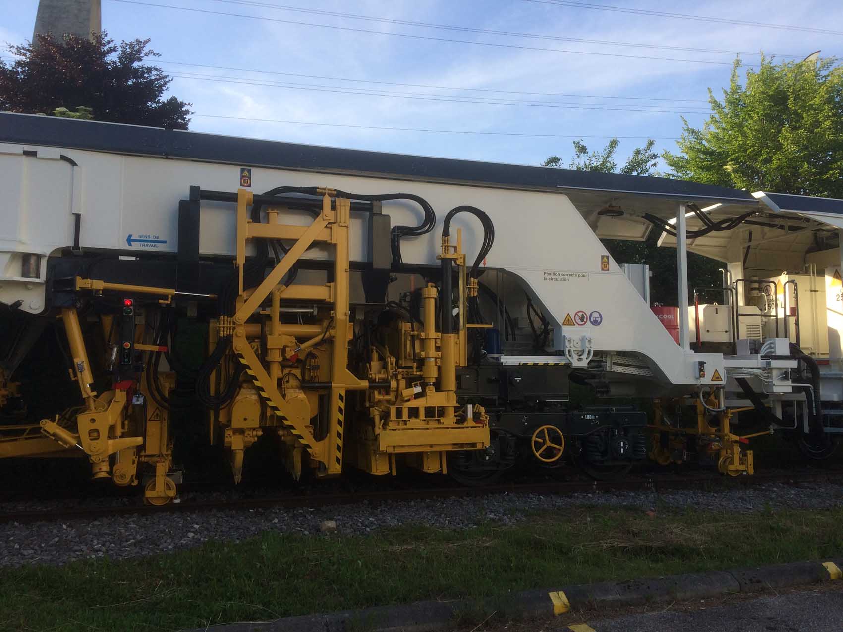 Cette bourreuse est équipée d'une stabilisation partielle dynamique de la voie, dans le cadre des restitutions de voies aux circulations commerciales à 80 km/h.