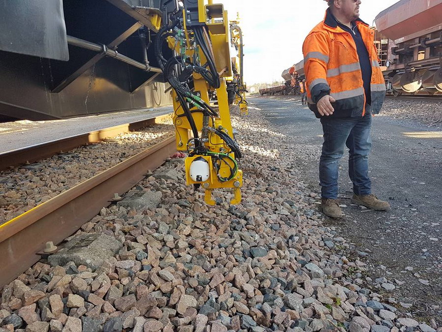 Voici un nouveau wagon de déchargement et de chargement de rails pour TSO en démonstration le 13 décembre 2017