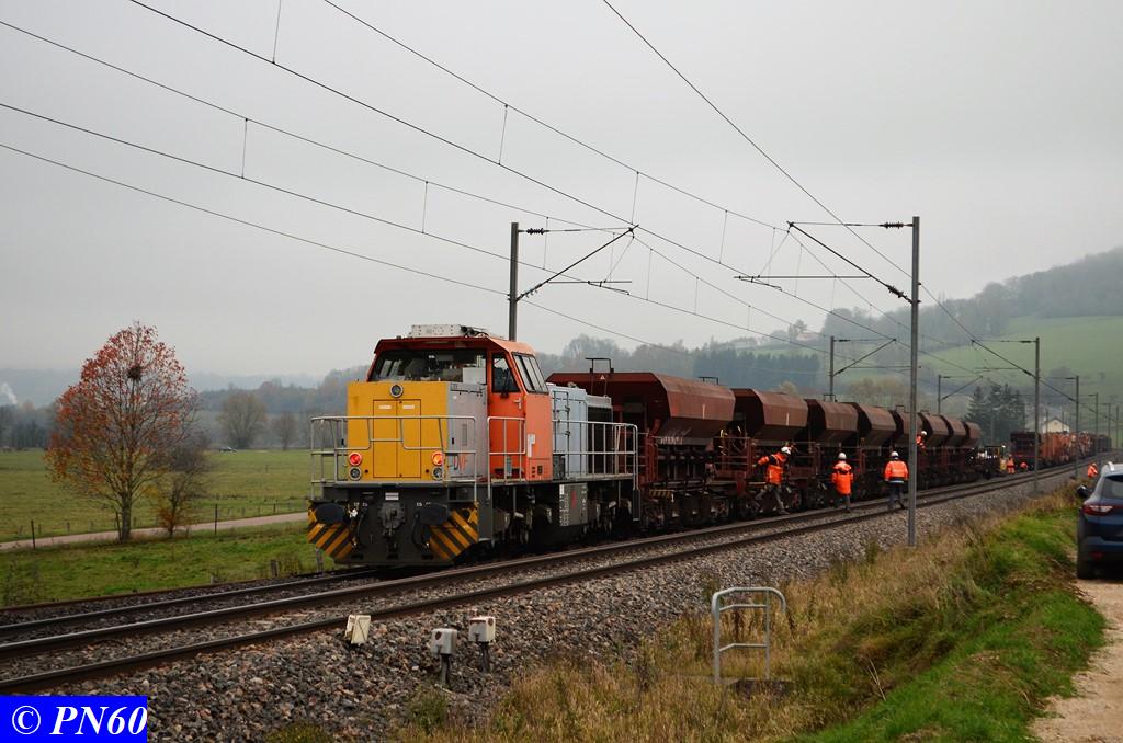 Selon les explications données par un internaute, Il s'agit dune des bourreuses qui effectuent le relevage de la voie ( 70 mm maxi), et les ouvriers vérifient la position de la voie et son dévers, ainsi que de la caténaire, et éventuellement adaptent cette dernière.