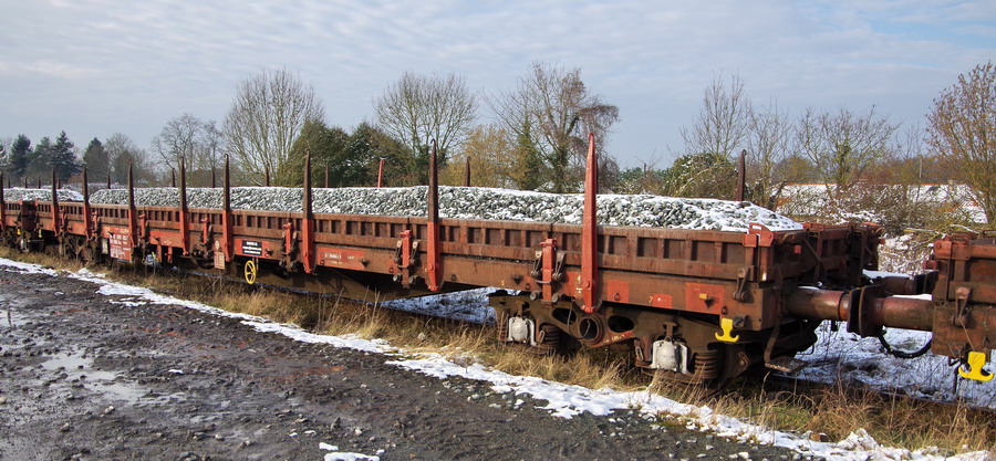 pour la manœuvre de wagons plat R39 à ranchers pour le chargement de ballast pour le RVB de la voie 2