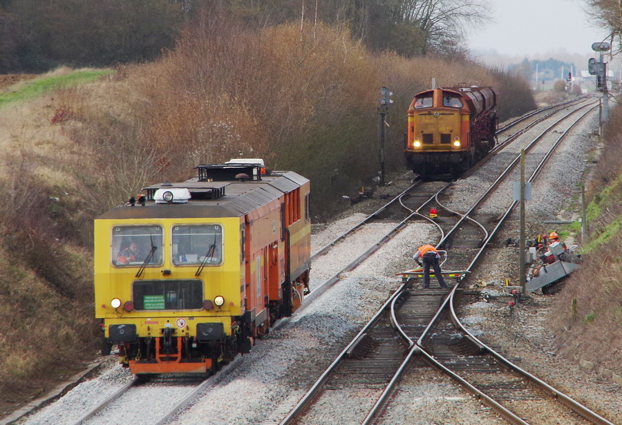 la rame de TTX la V211 de Colas Rail entre la bif et les Ponts Bray à Jussy le 14-02-2018