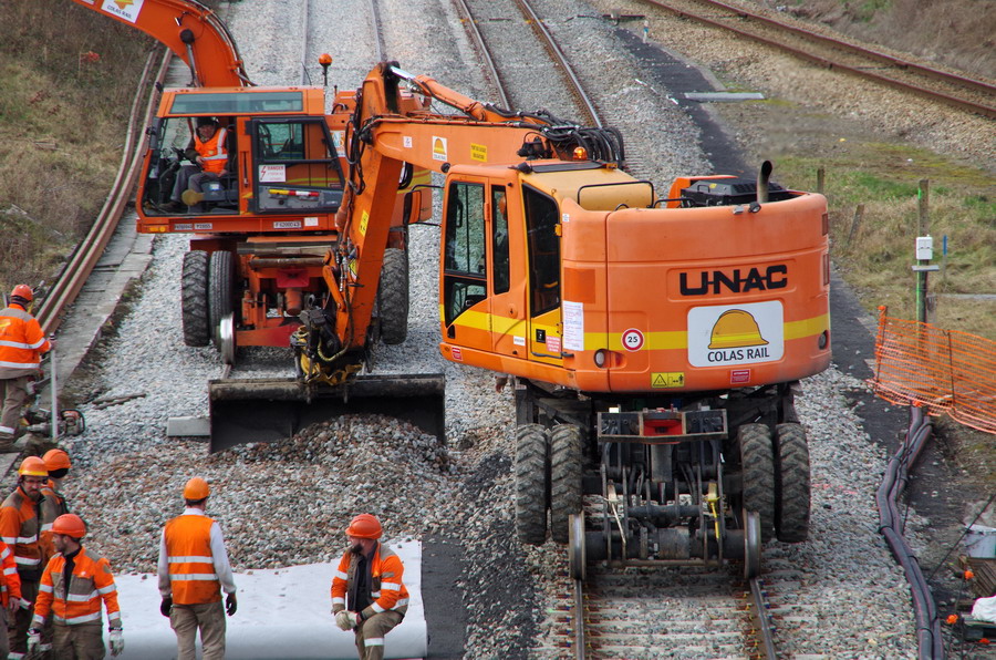 les deux Pelles Rail route UNAC et Case au niveau de la jonction des travaux à Jussy le 15-02-2018